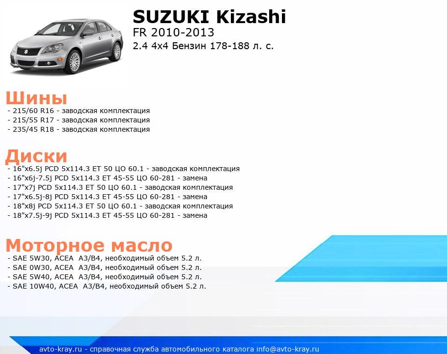 Kizashi 2.4 4x4 Бензин 178-188 л. с.