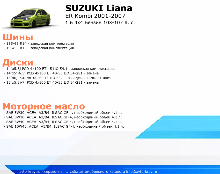 Liana 1.6 4x4 Бензин 103-107 л. с.