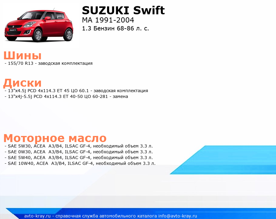 Swift 1.3 Бензин 68-86 л. с.