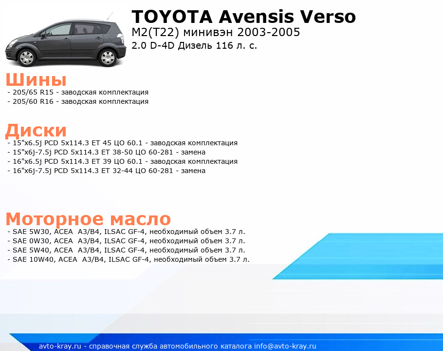 Avensis Verso 2.0 D-4D Дизель 116 л. с.