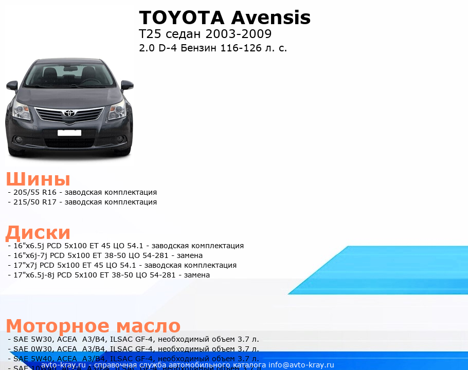 Avensis 2.0 D-4 Бензин 116-126 л. с.
