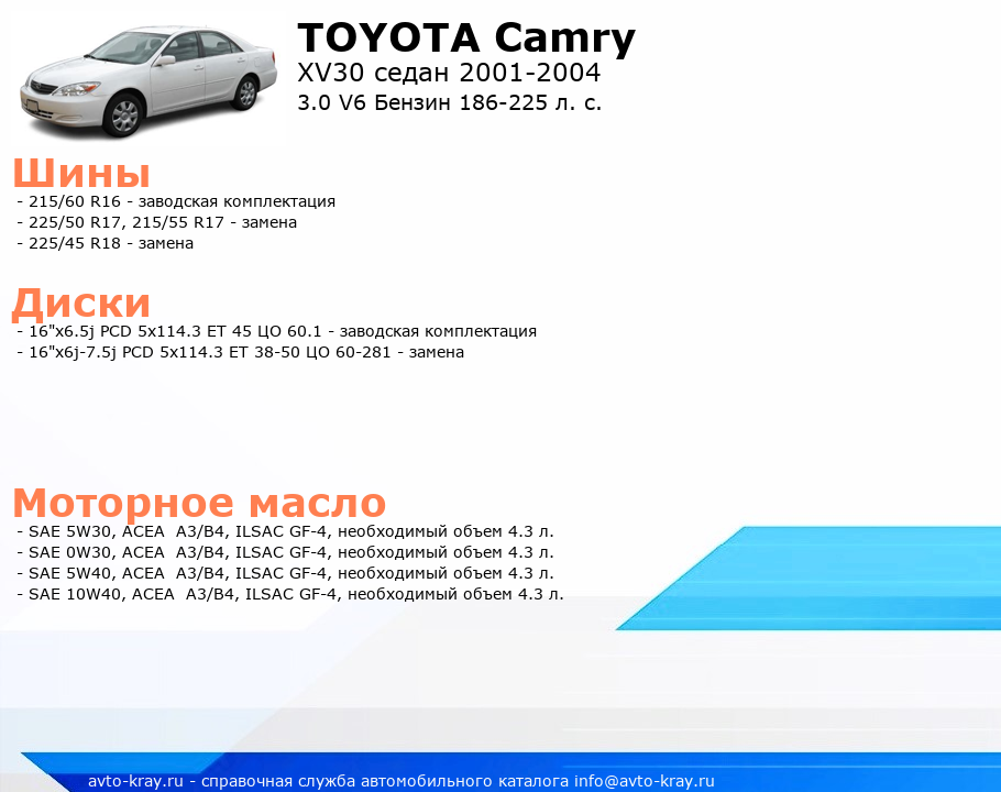 Camry 3.0 V6 Бензин 186-225 л. с.