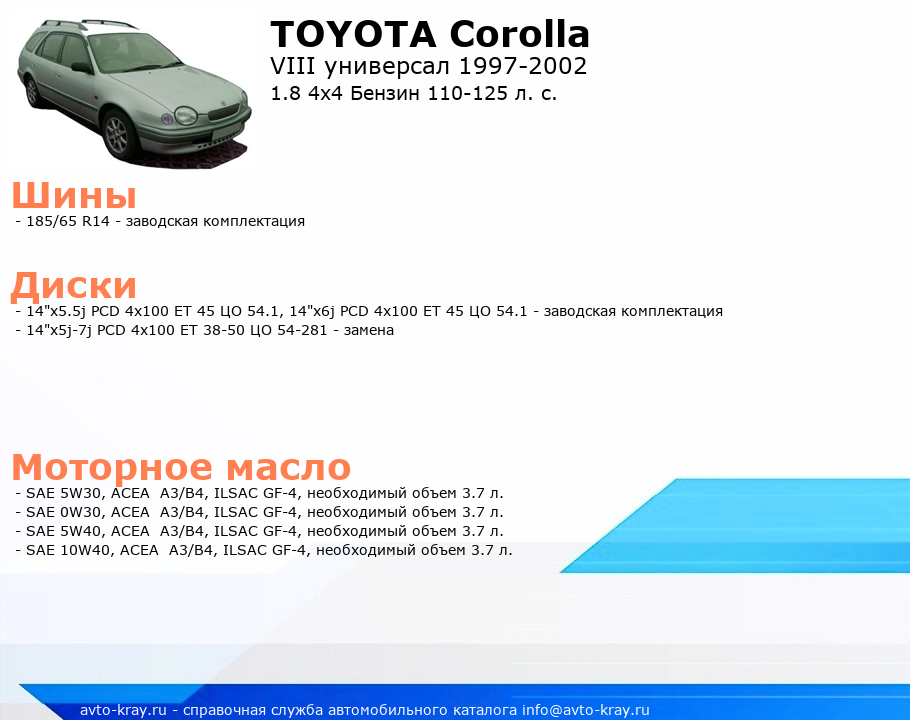 Corolla 1.8 4x4 Бензин 110-125 л. с.