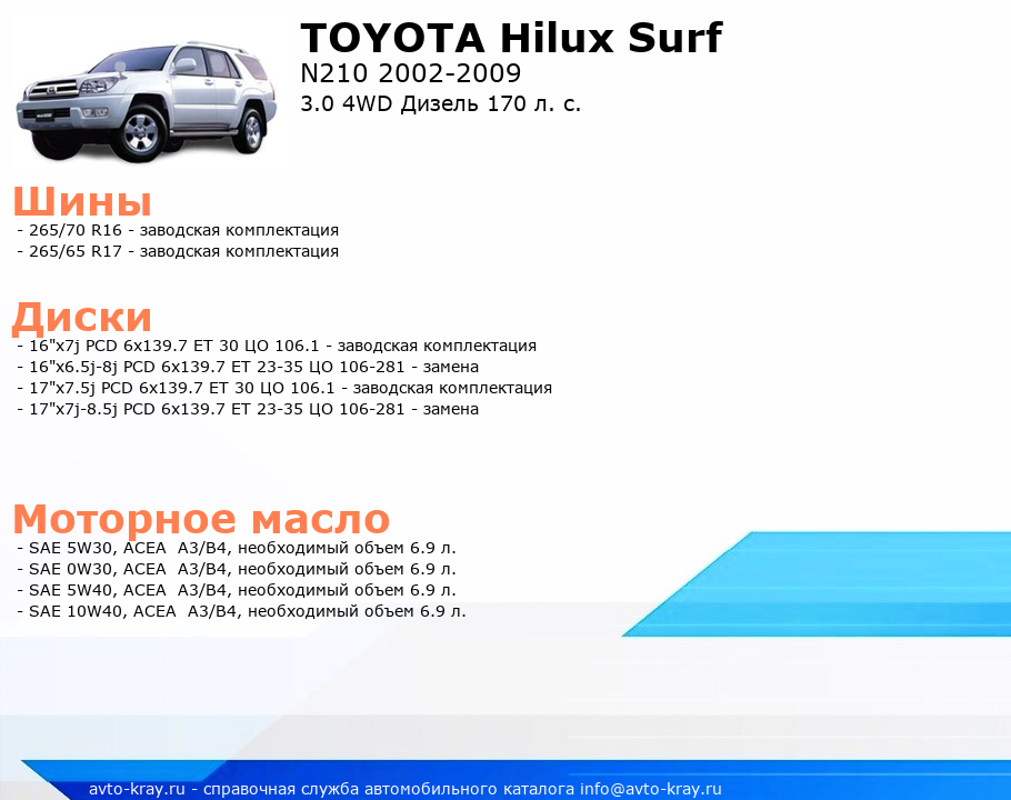 Hilux Surf 3.0 4WD Дизель 170 л. с.