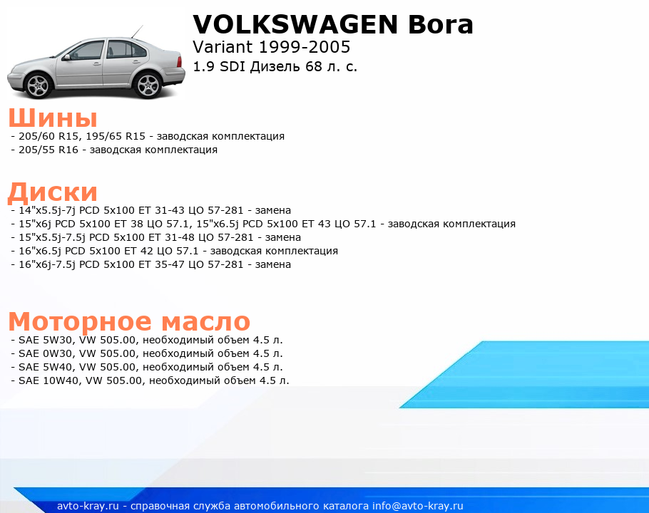 Bora 1.9 SDI Дизель 68 л. с.