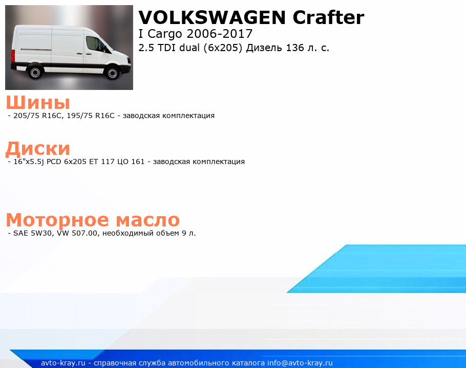 Crafter 2.5 TDI dual (6x205) Дизель 136 л. с.