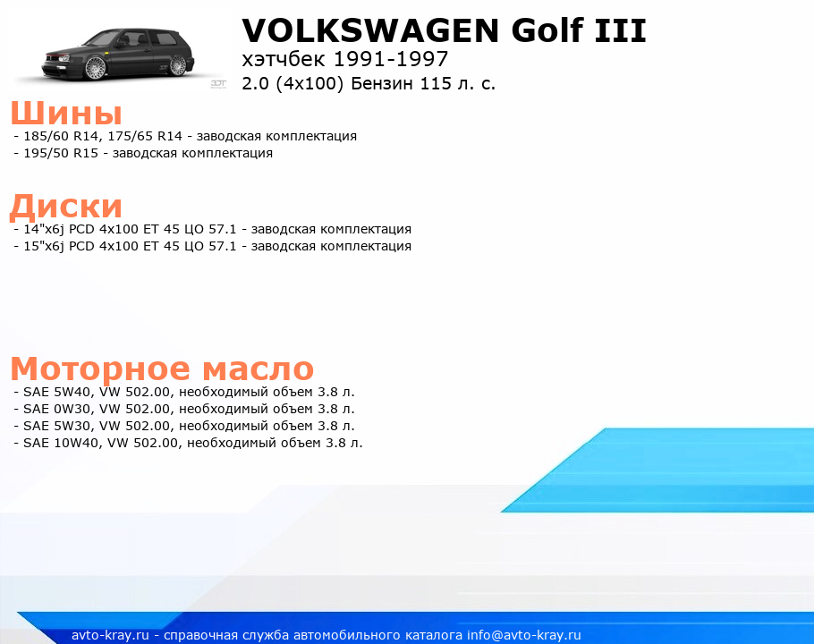 Golf III 2.0 (4x100) Бензин 115 л. с.