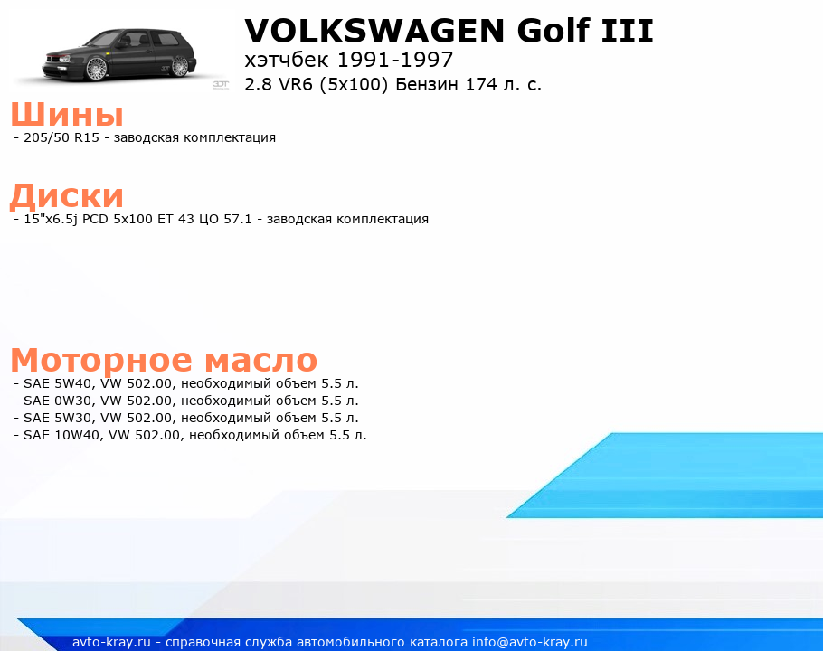 Golf III 2.8 VR6 (5x100) Бензин 174 л. с.