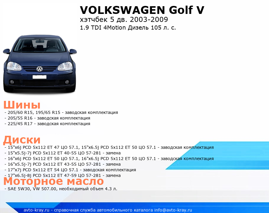 Golf V 1.9 TDI 4Motion Дизель 105 л. с.