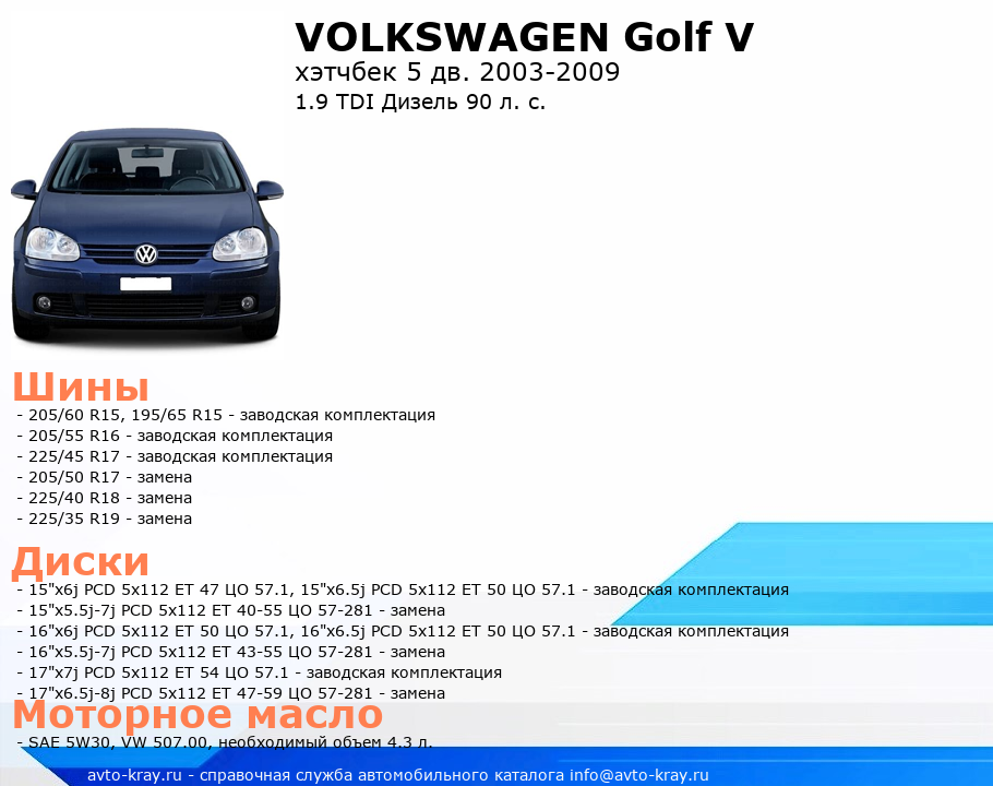 Golf V 1.9 TDI Дизель 90 л. с.