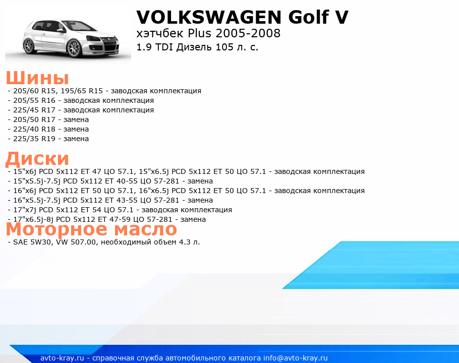 Golf V 1.9 TDI Дизель 105 л. с.