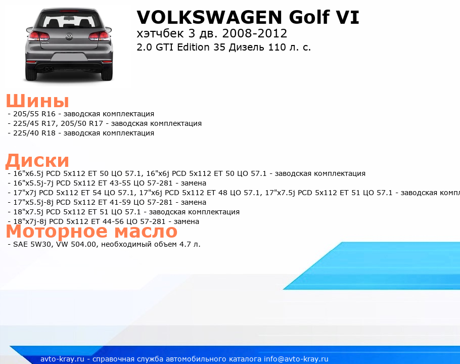 Golf VI 2.0 GTI Edition 35 Дизель 110 л. с.