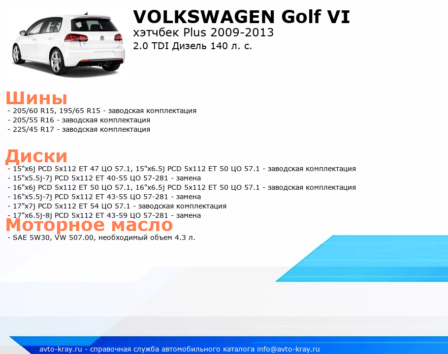 Golf VI 2.0 TDI Дизель 140 л. с.