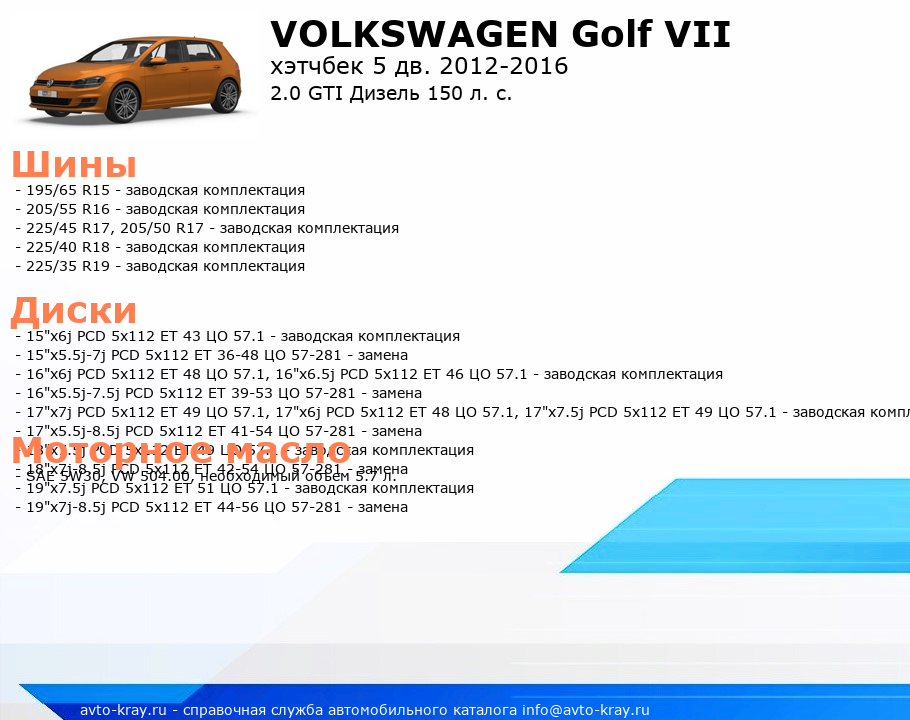 Golf VII 2.0 GTI Дизель 150 л. с.