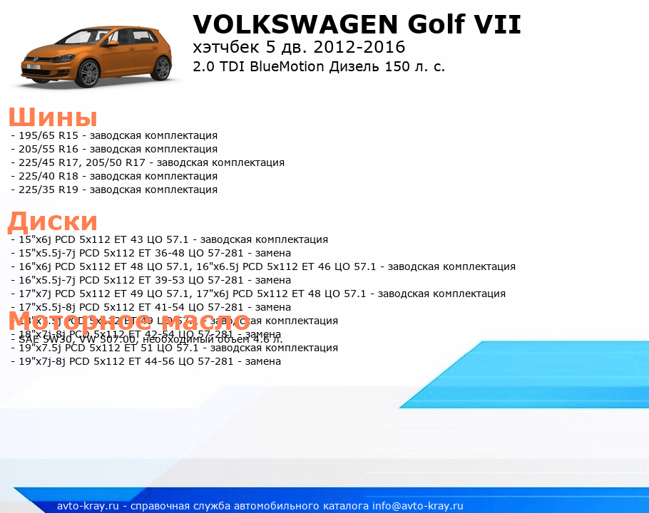 Golf VII 2.0 TDI BlueMotion Дизель 150 л. с.