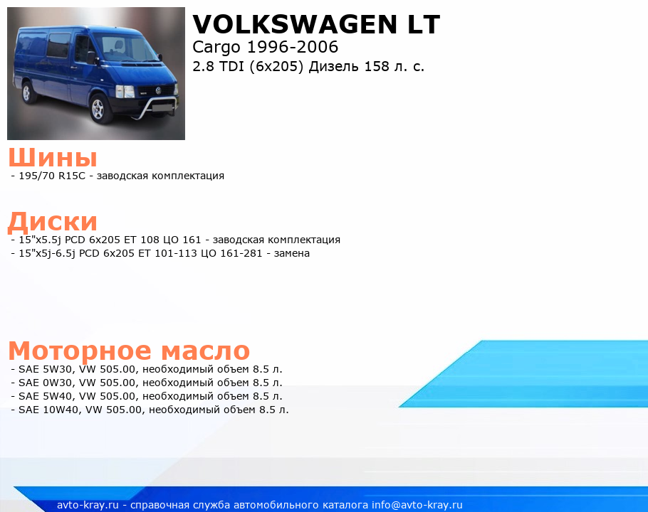 LT 2.8 TDI (6x205) Дизель 158 л. с.