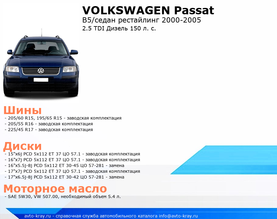 Passat 2.5 TDI Дизель 150 л. с.