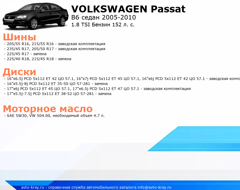 B6 седан 2005-2010