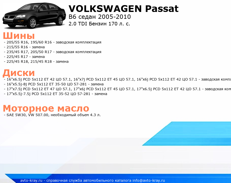 B6 седан 2005-2010