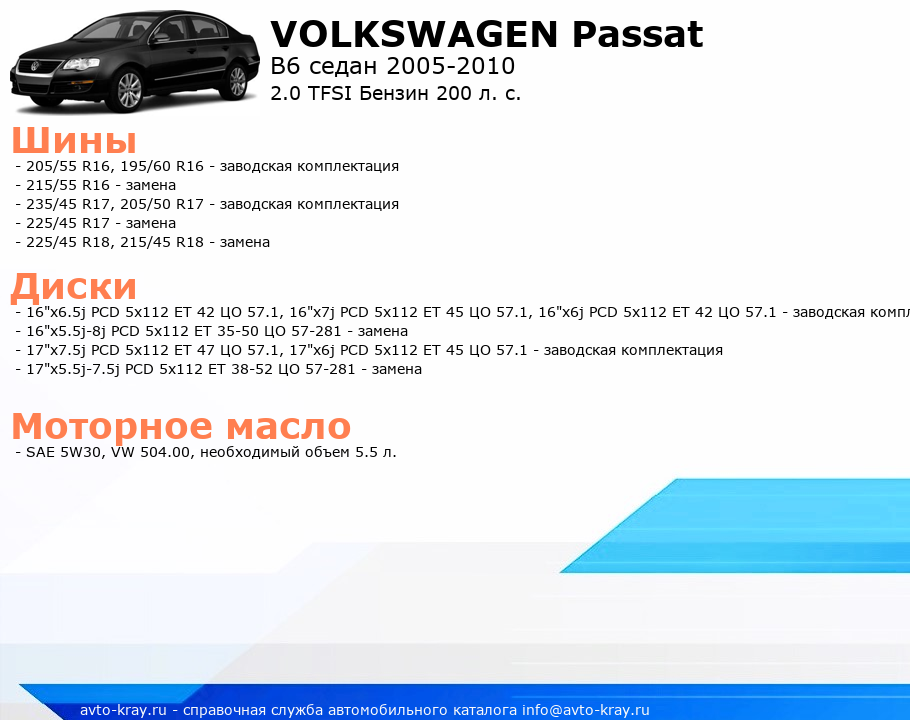 B6 седан 2005-2010