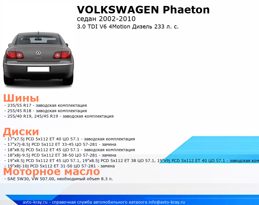 Phaeton 3.0 TDI V6 4Motion Дизель 233 л. с.