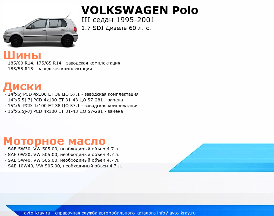 Polo 1.7 SDI Дизель 60 л. с.