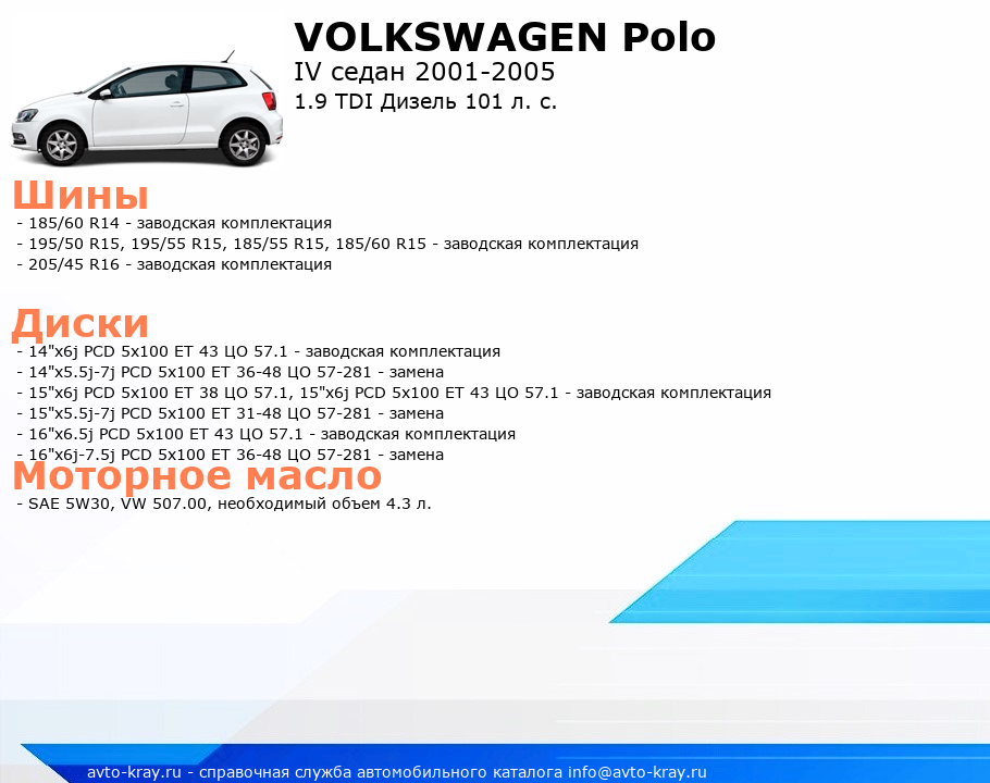 Polo 1.9 TDI Дизель 101 л. с.
