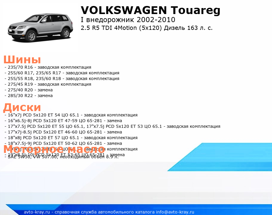 Touareg 2.5 R5 TDI 4Motion (5x120) Дизель 163 л. с.