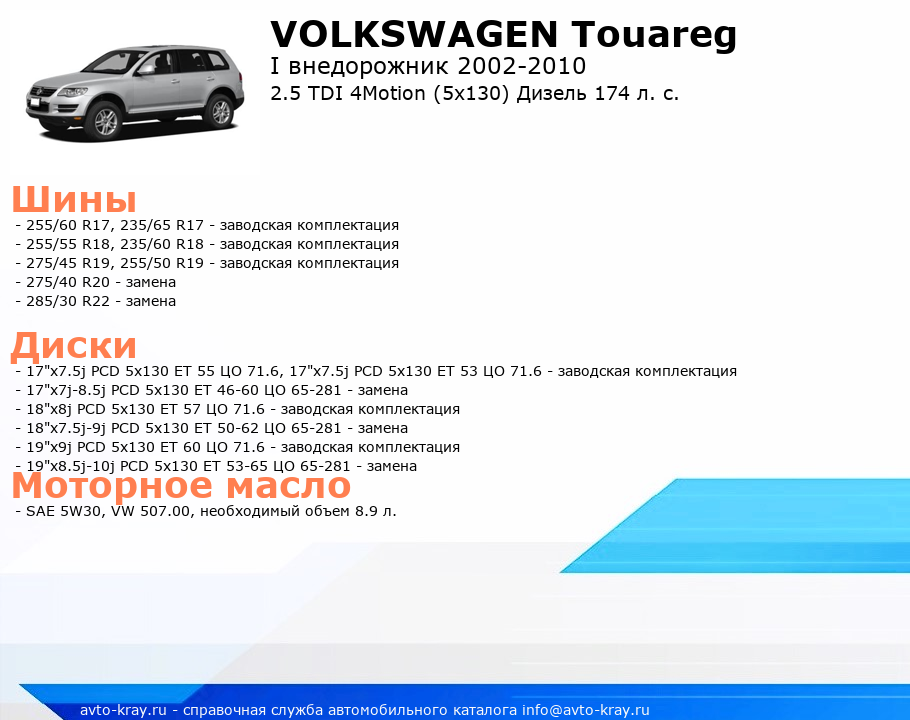 Touareg 2.5 TDI 4Motion (5x130) Дизель 174 л. с.