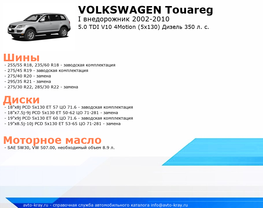Touareg 5.0 TDI V10 4Motion (5x130) Дизель 350 л. с.