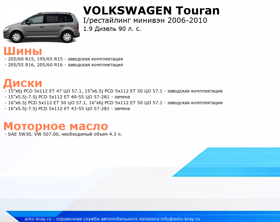 Touran 1.9 Дизель 90 л. с.