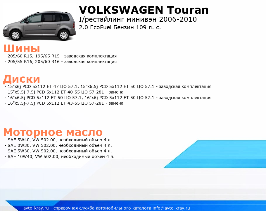Touran 2.0 EcoFuel Бензин 109 л. с.