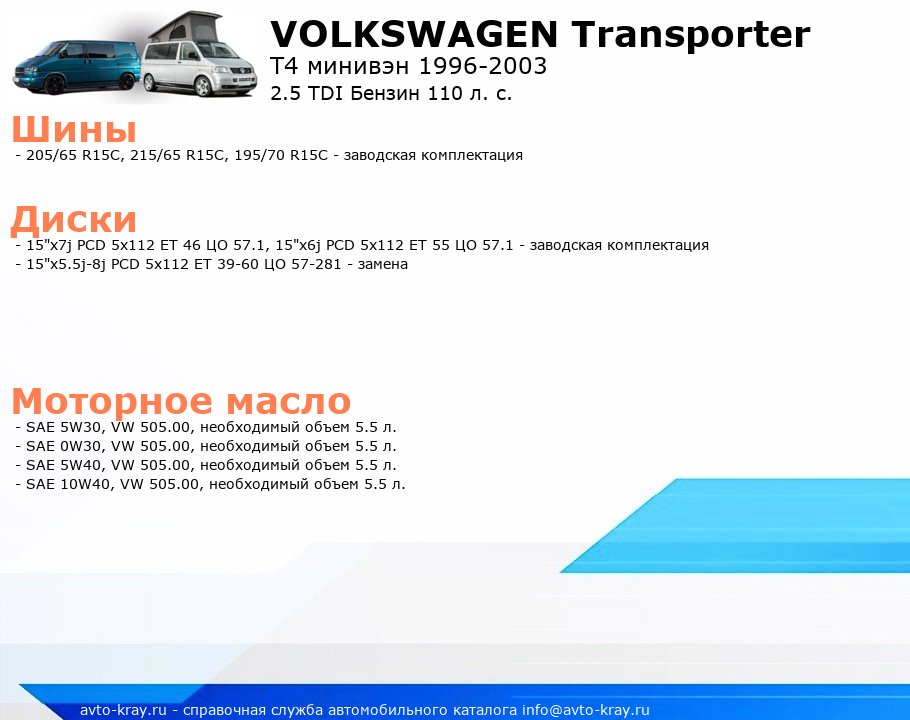 Transporter 2.5 TDI Бензин 110 л. с.
