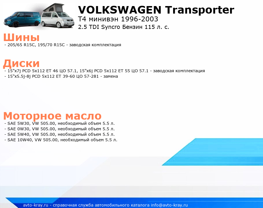 Transporter 2.5 TDI Syncro Бензин 115 л. с.