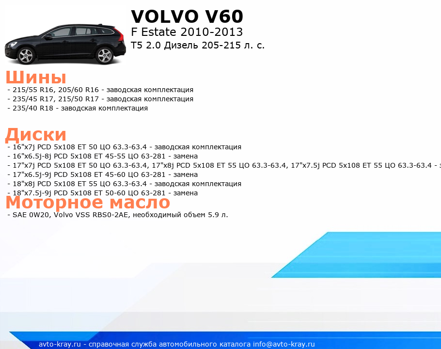 V60 T5 2.0 Дизель 205-215 л. с.