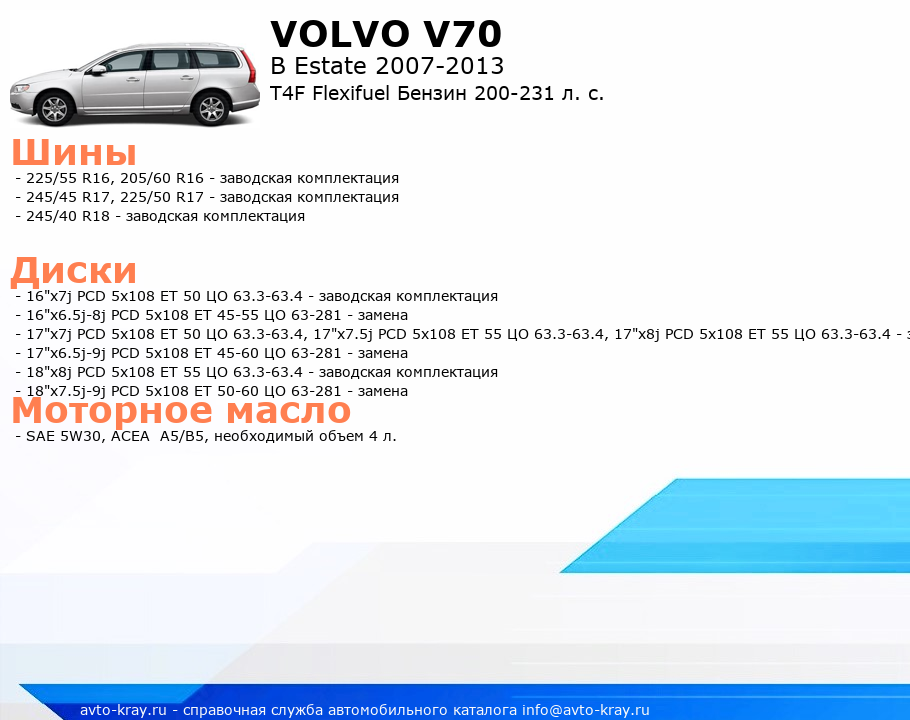 V70 T4F Flexifuel Бензин 200-231 л. с.