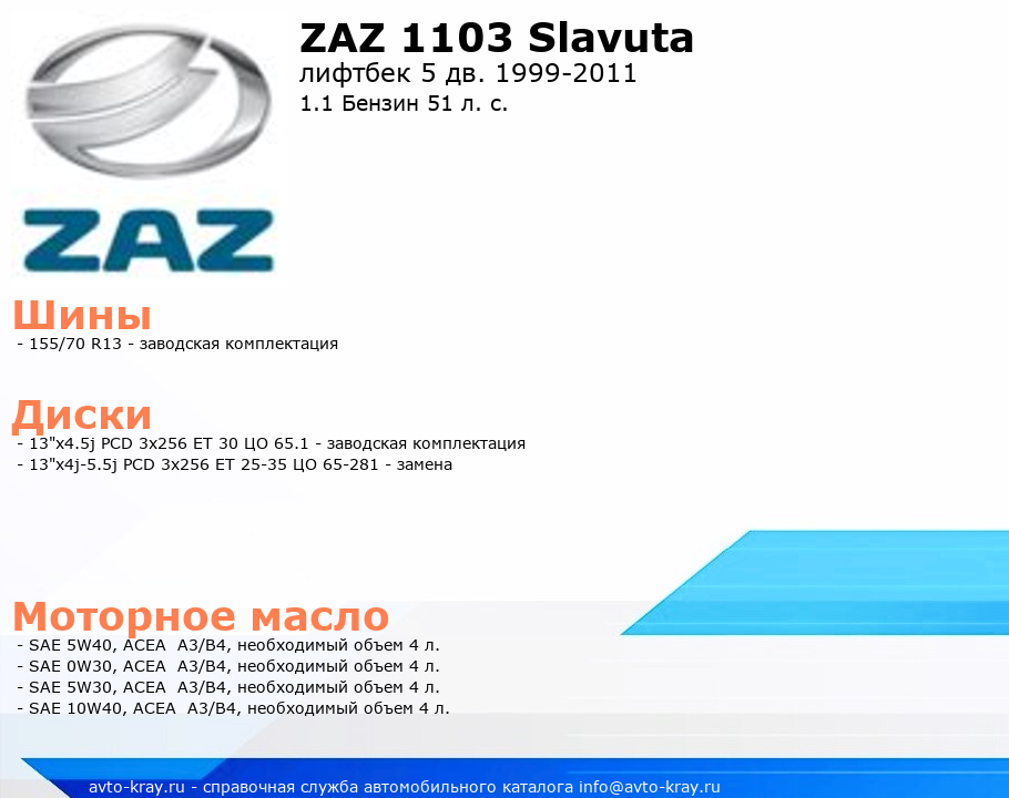 1103 Slavuta 1.1 Бензин 51 л. с.